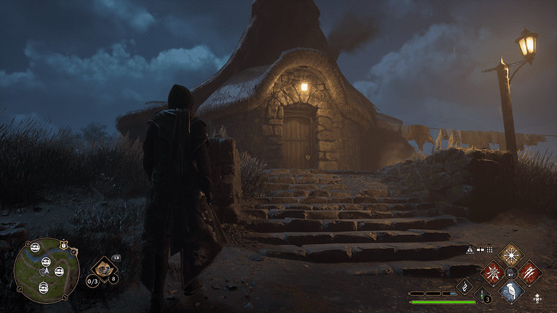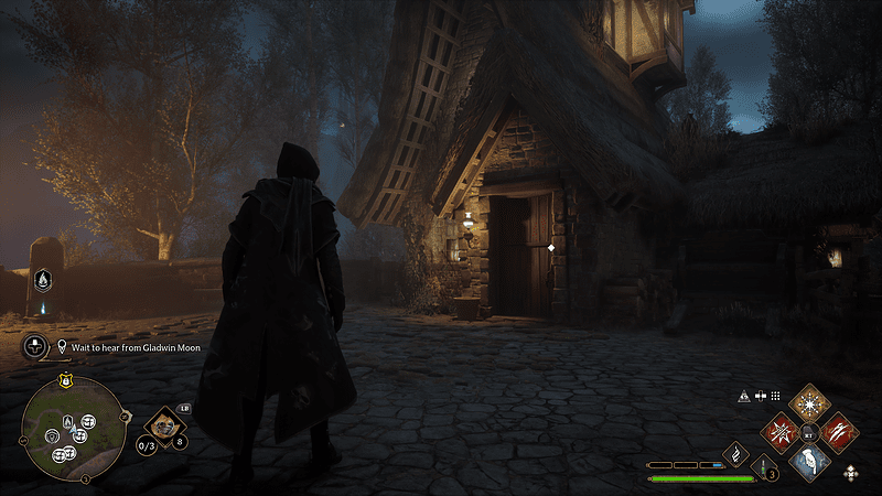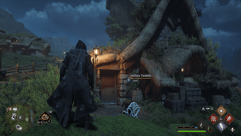 When you fast travel to the floo flame, you will immediately notice a triangular shaped house to your right. It will also have an NPC named Althea Twiddle sitting right outside.