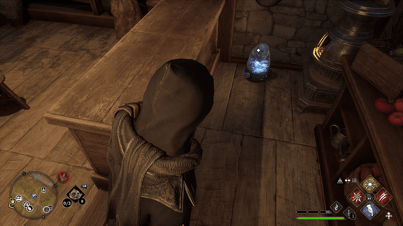 After fast traveling to the location, head north and you will come across a house with a wheel by its door. Unlock the door and enter to find the Demiguise Statue inside.