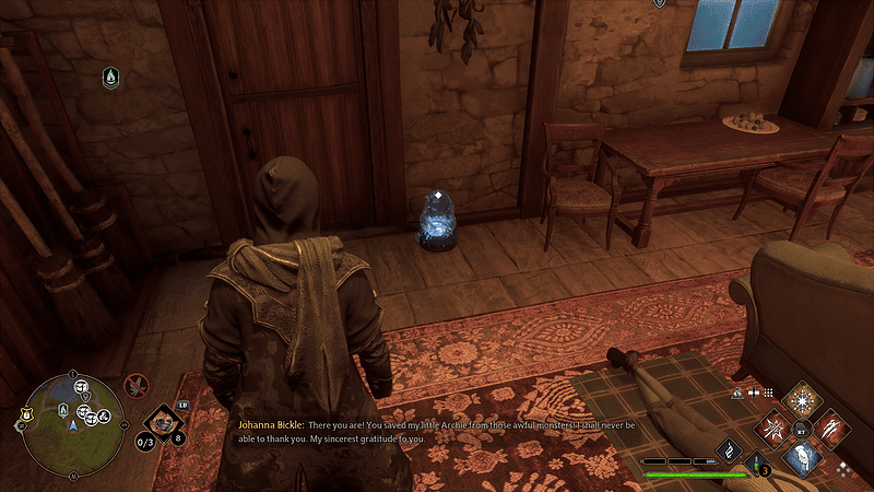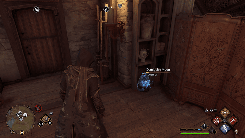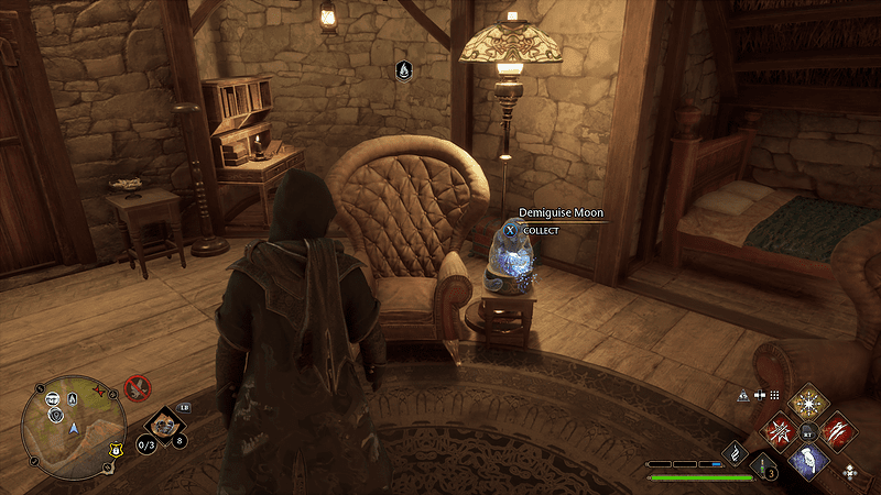 The house will have a level one lock. Unlock the door using Alohomora and enter the house to find the Demiguise statue.