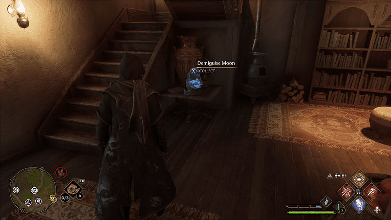 Enter the house and look at the ground by the door to find the demiguise statue.