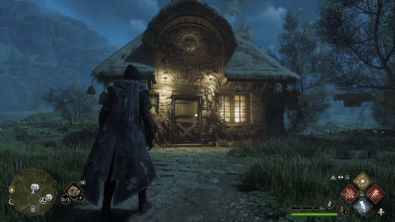 From the floo flame turn left (northeast) and follow the path until you see the first house to your left.