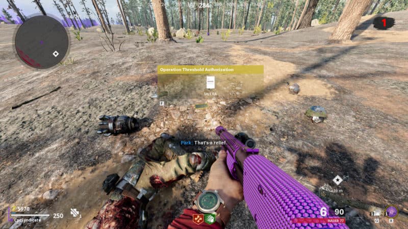 Look for a yellow highlighted item on the ground after killing the elite zombies.