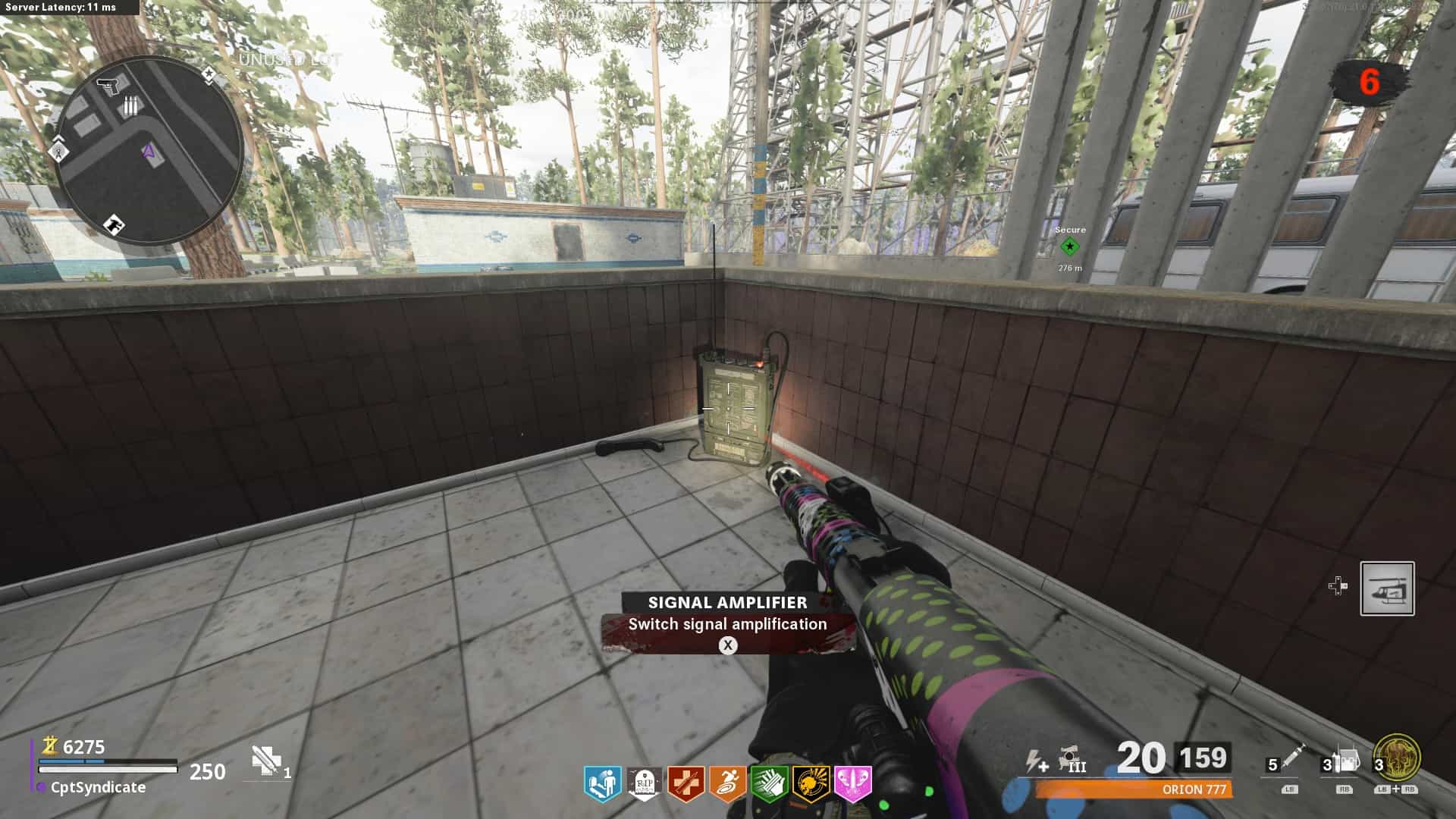 Finally, the last amplifier is found by the bridge located in the western section of the plant. The amplifier will be on the ground next to the fence and some blue barrels.