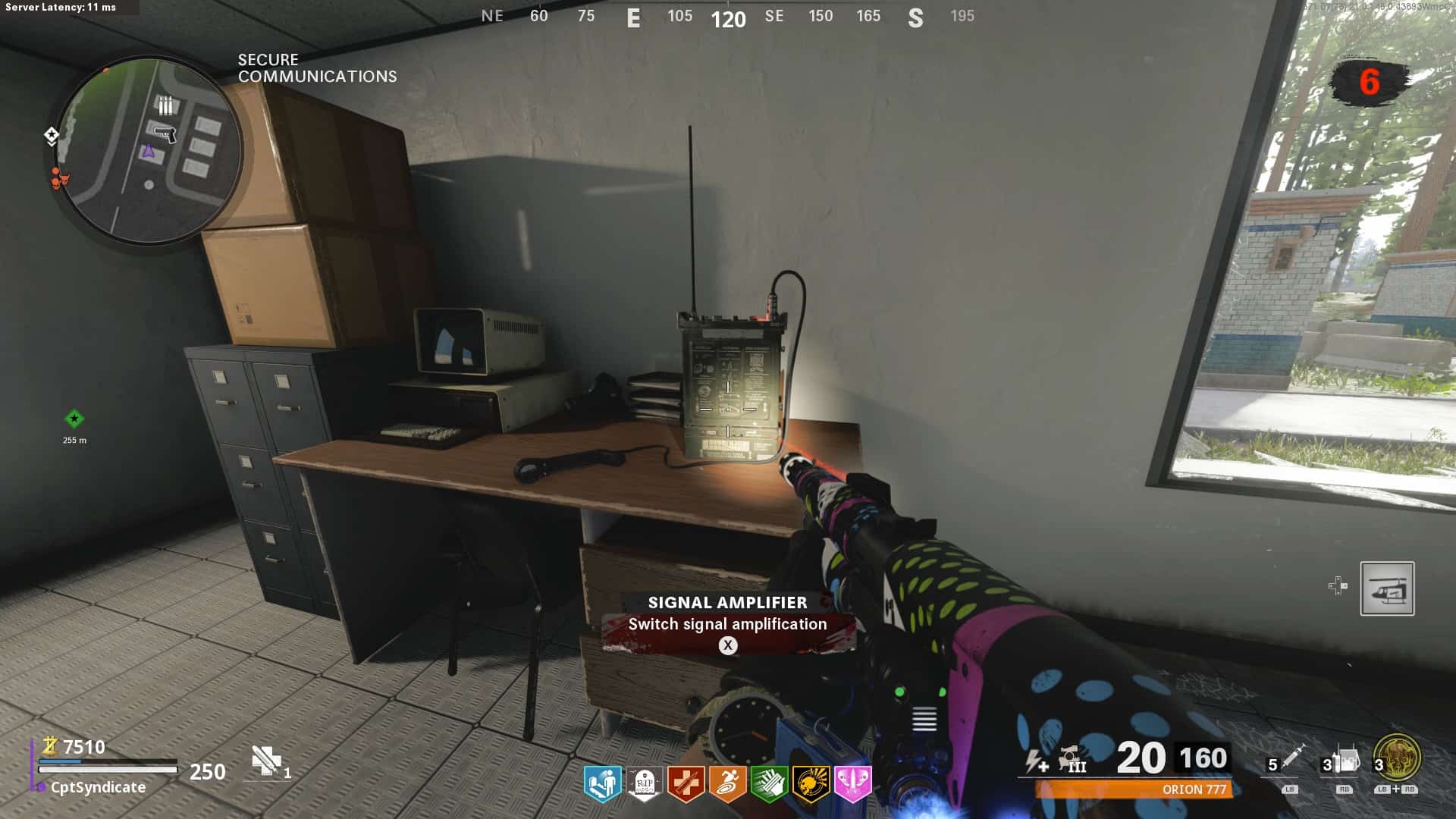 The second amplifier is located inside one of the cabins at Secure Communications. The amplifier is on the desk.