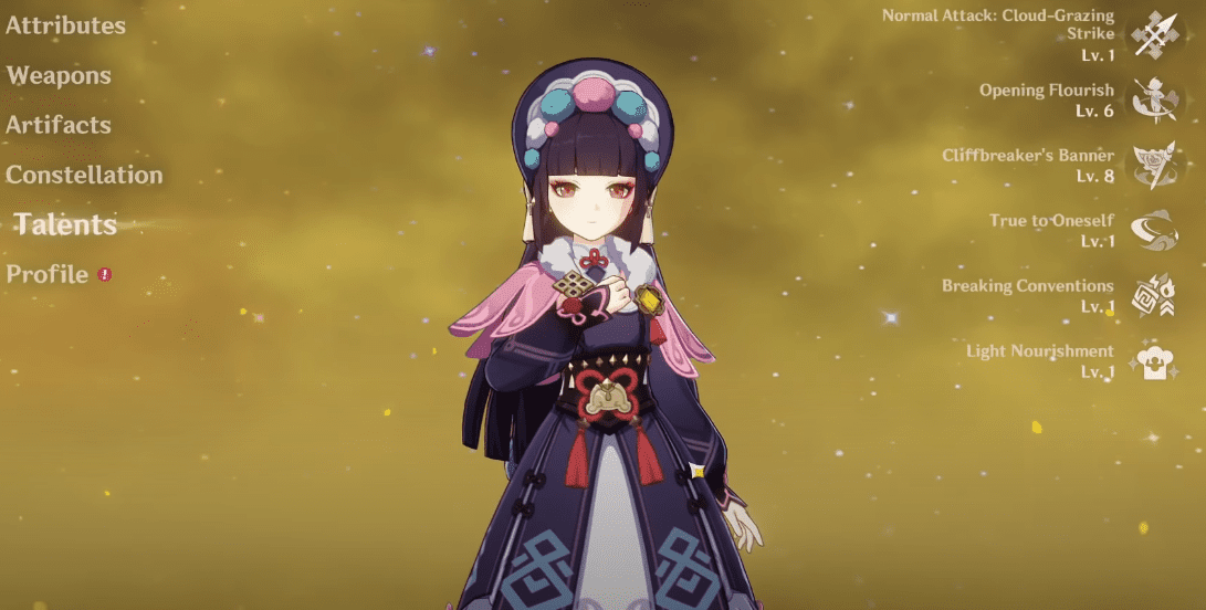 You can unlock the Breaking Convention passive of Yun Jin in Ascension Phase 4. Unlocking this passive will further increase the bonus damage given by the Flying Cloud Flag Formation buff. The passive will increase the bonus damage according to 2.5%/5%/7.5%/11.5% depending on Yun Jin’s defense and the number of elemental types in the party.