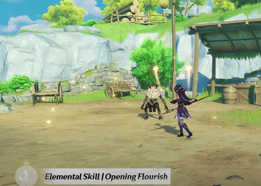 Opening Flourish is the elemental skill of Yun Jin. Pressing her elemental skill will allow you to deal Geo damage to your enemies. If you hold the Opening Flourish, Yun Jin will summon a shield whose damage absorption is dependent on the maximum HP of Yun Jin. This shield has 150% effectiveness against both physical and elemental damage from enemies. When the shield breaks or the skill ends, Yun Jin will deal Geo damage on enemies.