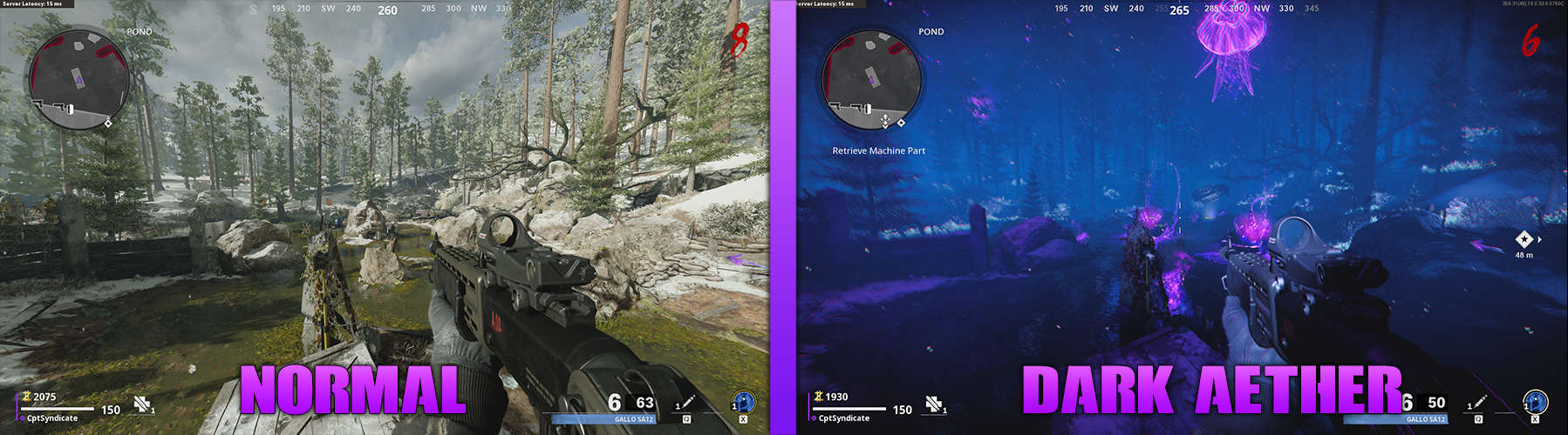 As mentioned above, the “Nazi Experiment Gone Wrong” scenario occurred which lead to the opening of rifts into the Dark Aether. Dark Aether is the exact mirror image of the real world but darker. It is a fantasy world, but not the good kind. Dark Aether is home to the Zombies, Plaguehounds, and even Giants. Whenever you kill a Zombie in Dark Aether, they float away into the sky.