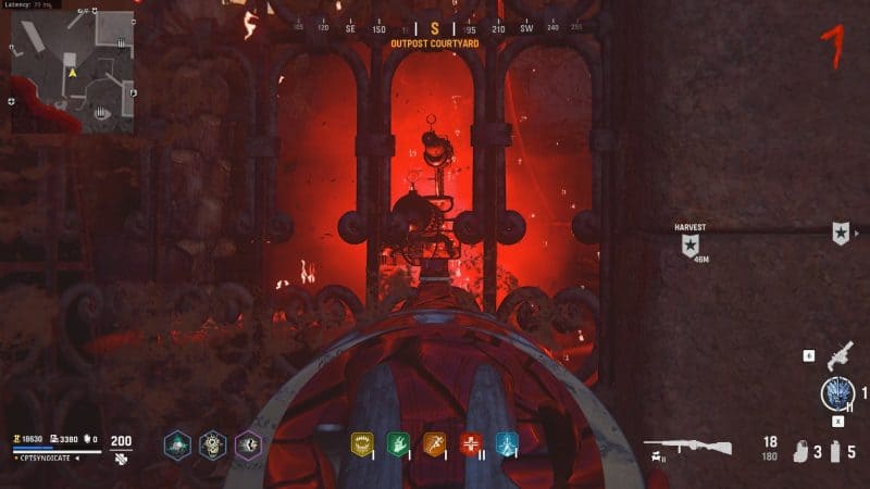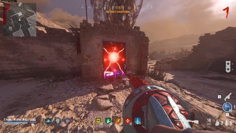The Lost tome page easter egg is also known as the free raygun easter egg or the free death machine easter egg. If you make your way to the Outpost Courtyard on the eastern part of the map, you will notice a small room with a red aether barrier blocking it.
