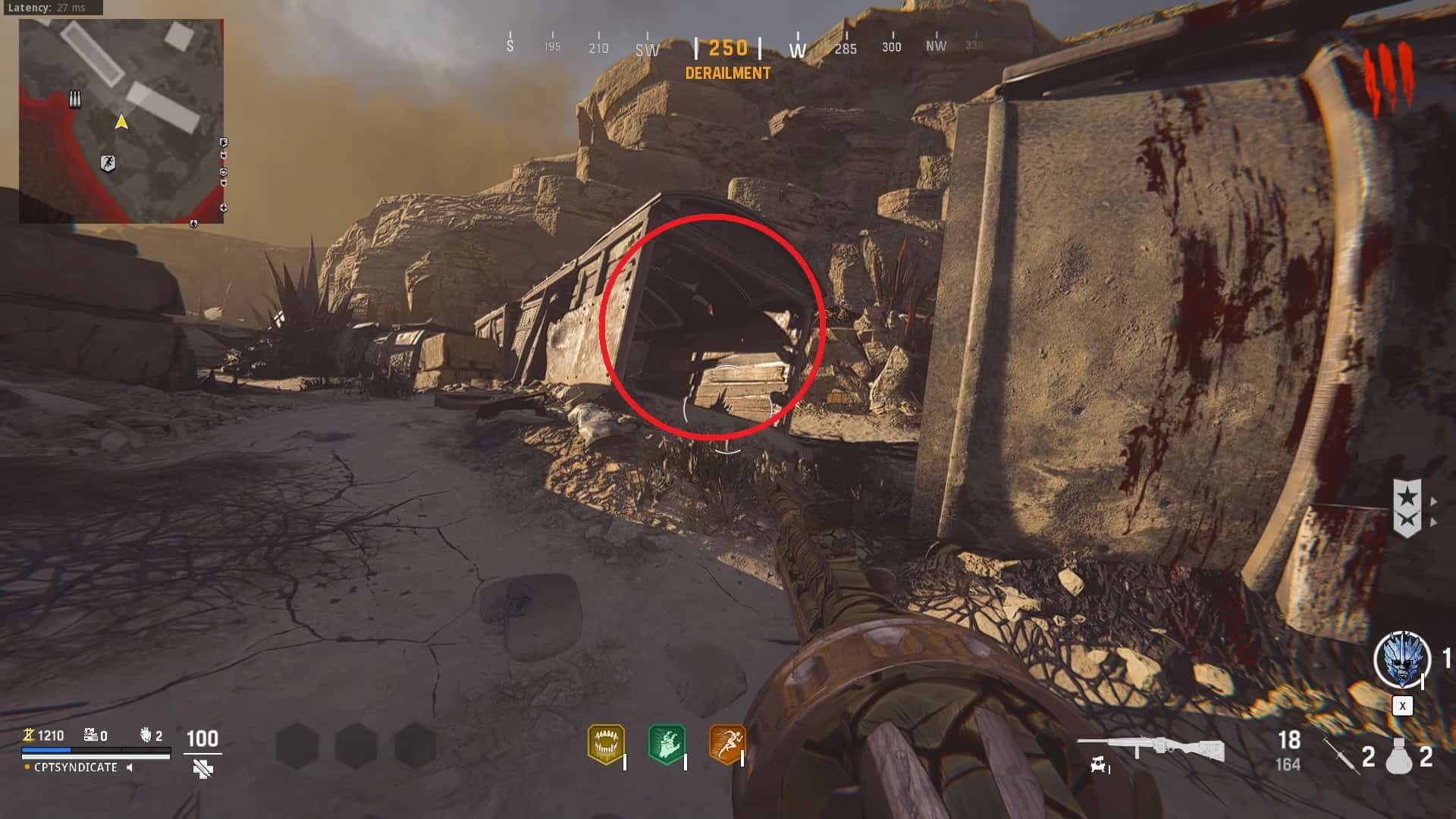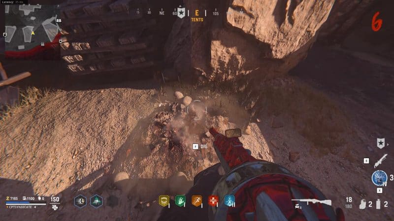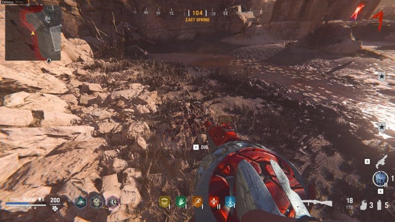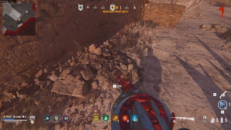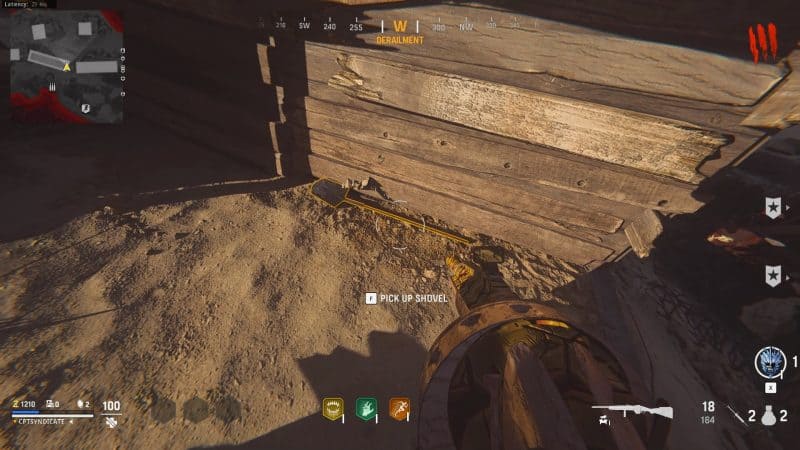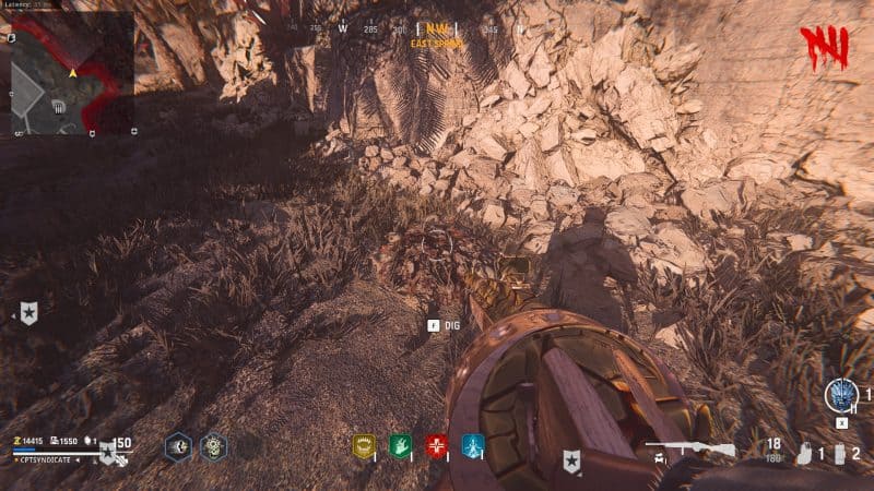 Almost all the side-easter eggs on Terra Maledicta require you to dig certain spots located all over the eastern desert (the central hub). For this, you need to get a shovel. So, before you do anything else, let’s get the shovel. There are four shovel locations and the shovels always spawn at each one of these locations (for all four players on the map). However, if there are only two players on the map, only two shovels will spawn. Similarly, if you’re playing it solo, only one will spawn at any one of the four locations.
