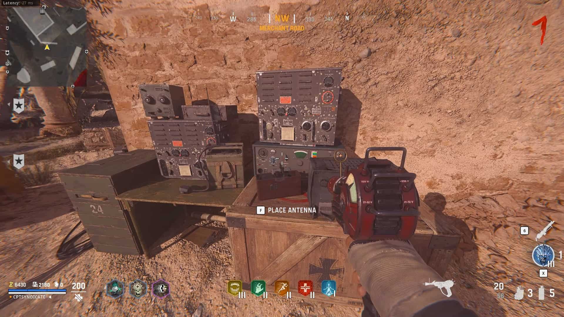 Interact with the radios, and you will attach the antenna to one of the radios on the crate.