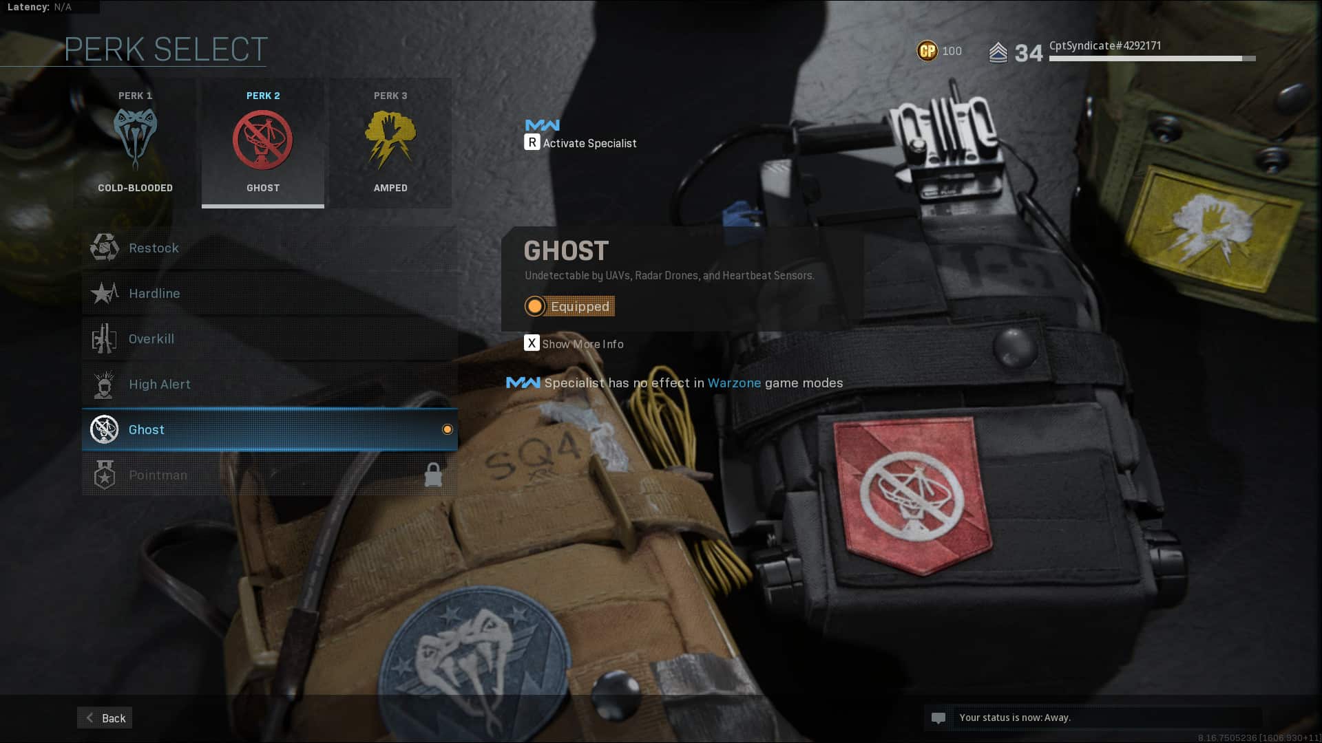 The Ghost perk is an absolute no brainer. When you have the Ghost perk, you are undetectable by enemy UAVs, Radar Drones and Heartbeat Sensors.