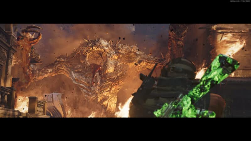 Once the cutscene ends, you will directly be put against the final boss called ‘Orda,’ also known as the “Elder God.” We first saw Orda during the high rounds of Die Maschine lurking outside the map in the woods. We also saw the hand of Orda when solving the Hand Easter Egg on Die Maschine.