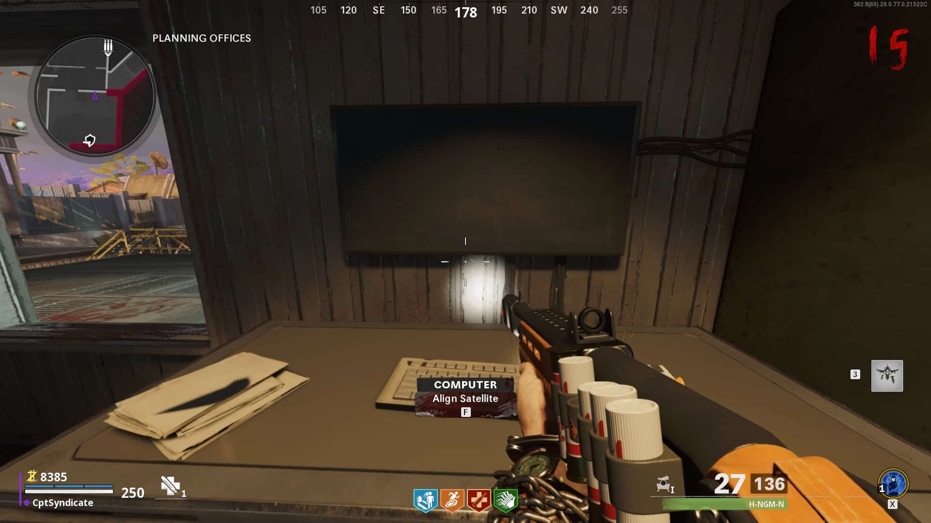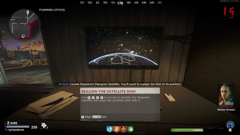 Before realigning the Satellite dish, leave one zombie at the end of the round and trap him using the essence trap so that he won’t be able to annoy you when realigning. The controls are a bit confusing when realigning, so it takes a minute to get used to the controls, especially on PC.