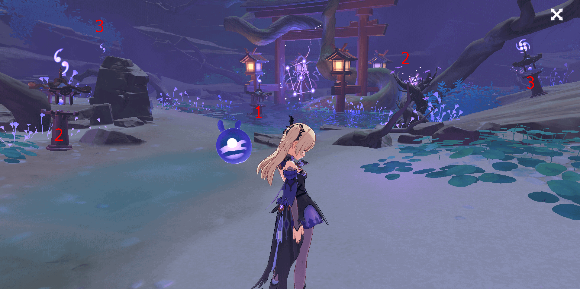 Adjust the notches until it matches the number of notches for each shrine above. For example, 3 notches mean that the sign above the shrine should have 3 notches or semicolon icons. Pray to the first notch that you purified. You will summon an enemy called Ochimusha which, when defeated, will summon the Maiden and complete the quest.
