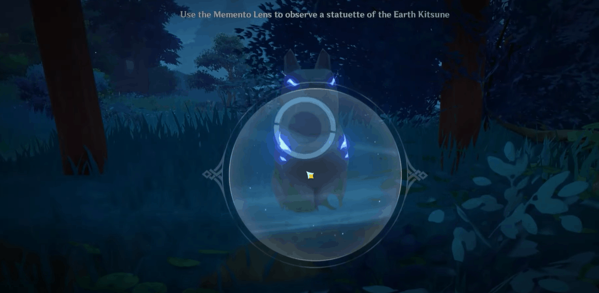 After getting the Memento Lens, you can fall from the Narukami Shrine to investigate the Abandoned Shrine once again. Use the Memento Lens on the Kitsune statue near the first shrine to see an Old man. Next, there is a Kitsune statue sheltered by a mini temple, use the lens over there as well. Just before the gate near the temple, you will see three kitsune statues, use the Memento Lens on the smallest statue.