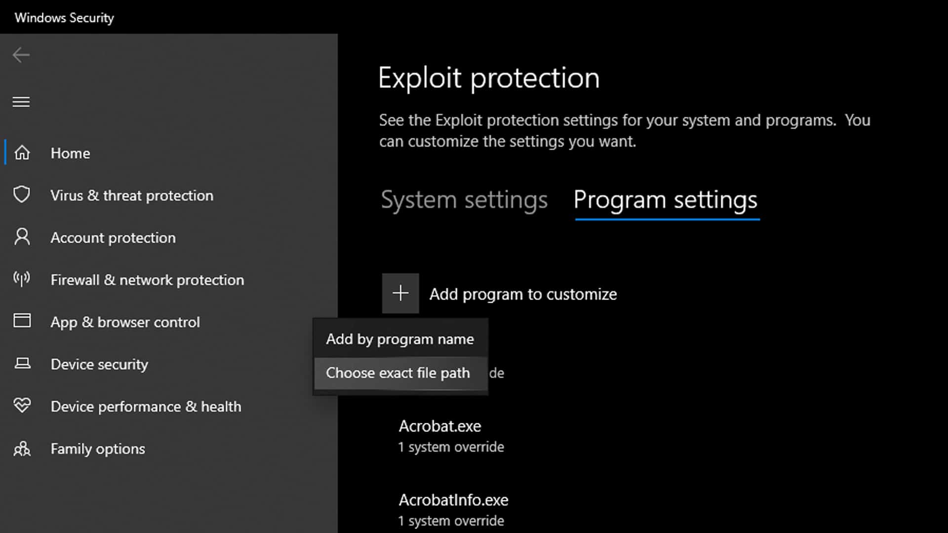 If you do not want to do it for the entire system, you can only do it for Hogwarts Legacy by first going to the ‘Program Settings.’ Click on ‘Add program to customize’ and then select ‘Choose exact file path.