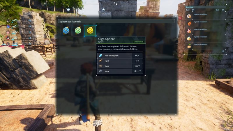 You can easily craft the common blue Pal Sphere using your Primitive Workbench, but to craft higher rarity Pal Spheres, you must build a Sphere Workbench once you’ve unlocked it from your technology tree. And if you want to automate your Pal Sphere production, you can build a Sphere Assembly Line at level 27.