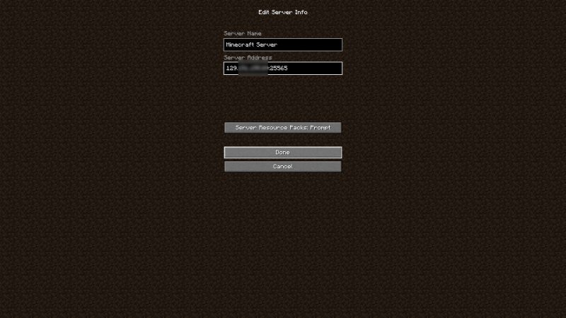 Click on ‘Add Server’ and name it whatever you want. But for the IP put yourpublicIP:25565. You need to give the same info to your friends for them to join your server.