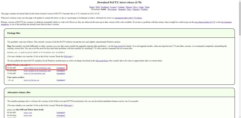 First, go to the official PuTTY website, download and install the application.