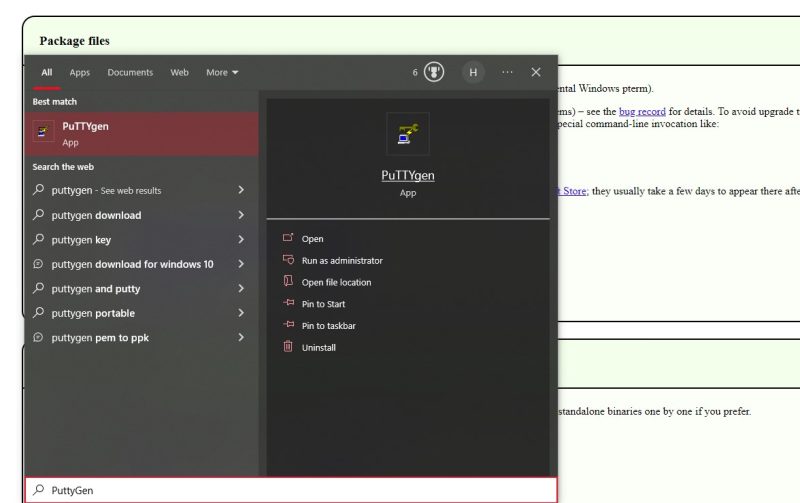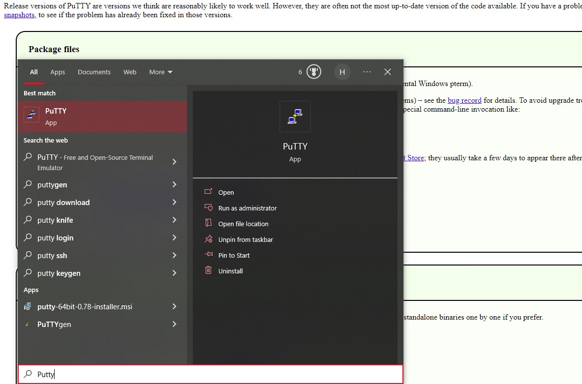 Now that we have the PuTTY key, we can go ahead and open up PuTTY. Open up PuTTY as an administrator and you can find it by searching it in your windows search bar.