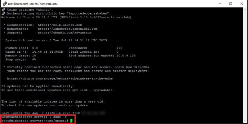 Once you’re done, click on open, and a terminal console will open. You can now access your server remotely from here. You can also enter useful commands and set up everything for your server through this console, which we will do now.