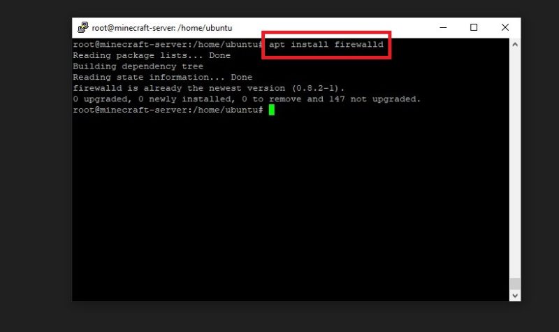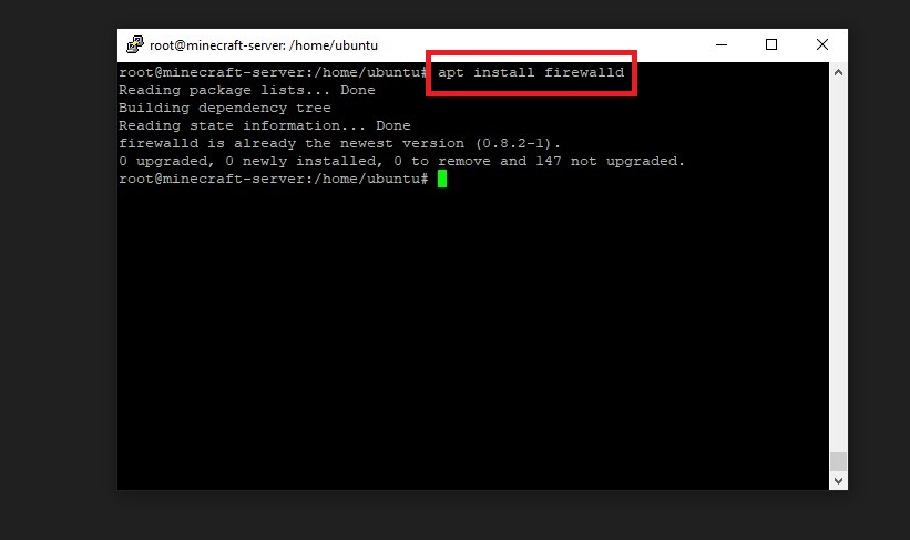 But before we do that, we need to install firewall on our server. To do that, type ‘apt install firewalld’