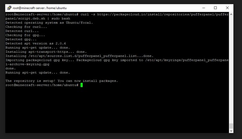 • curl -s https://packagecloud.io/install/repositories/pufferpanel/pufferpanel/script.deb.sh | sudo bash