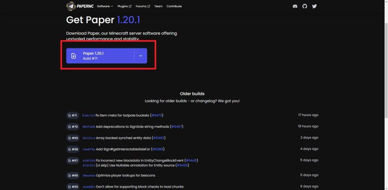 When you click on the ‘Paper version build’ you will navigate to the official paper website.