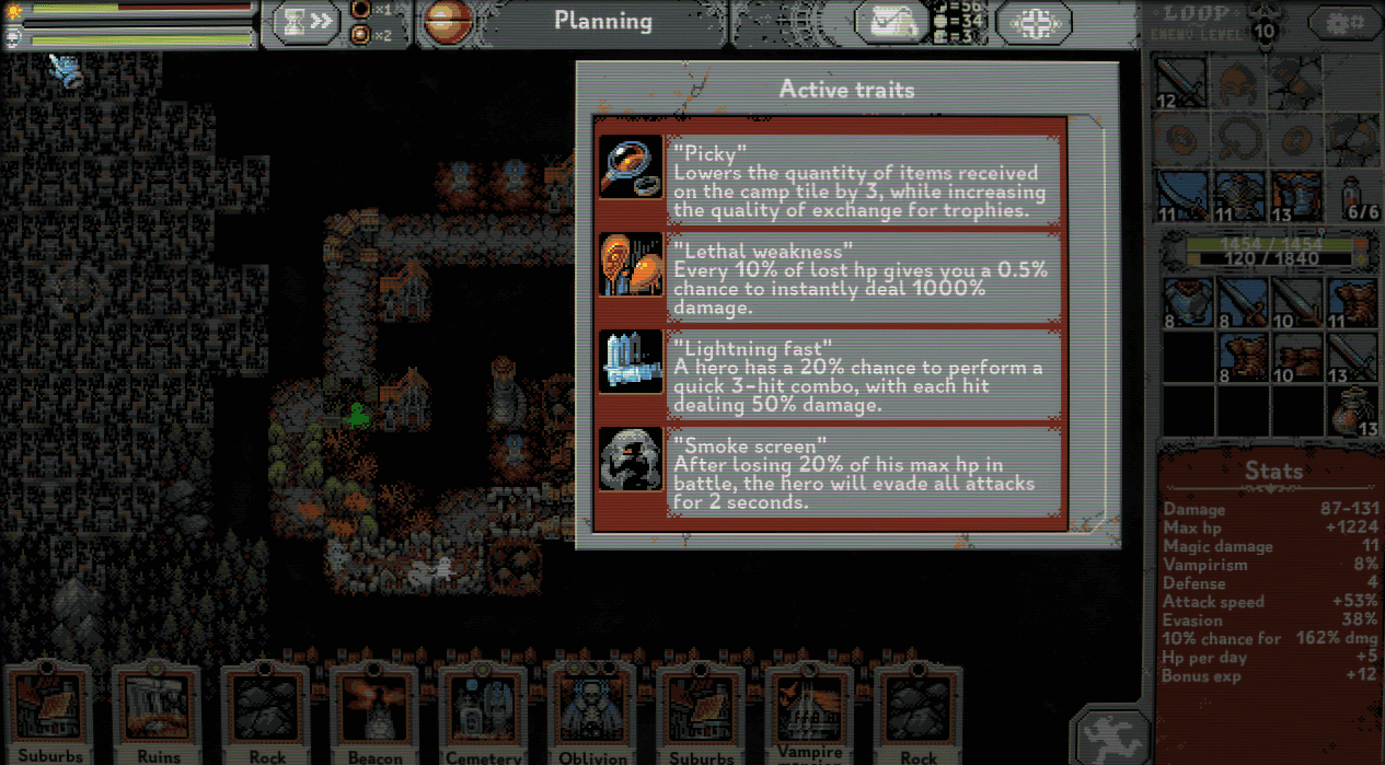 - The Suburbs tile card is used in the same manner as the Village tile, giving you extra EXP to get more traits during the loop.