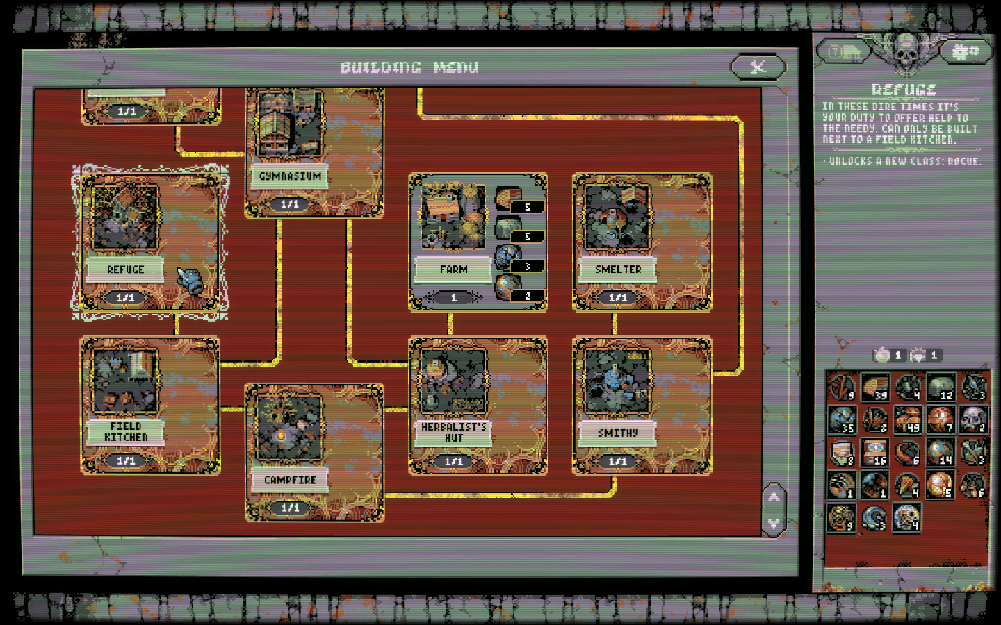 To unlock the Rogue in Loop Hero, you need to build two things in the Camp. First is the Field Kitchen, which will then unlock the Refuge, our Rogue’s building of liberation.