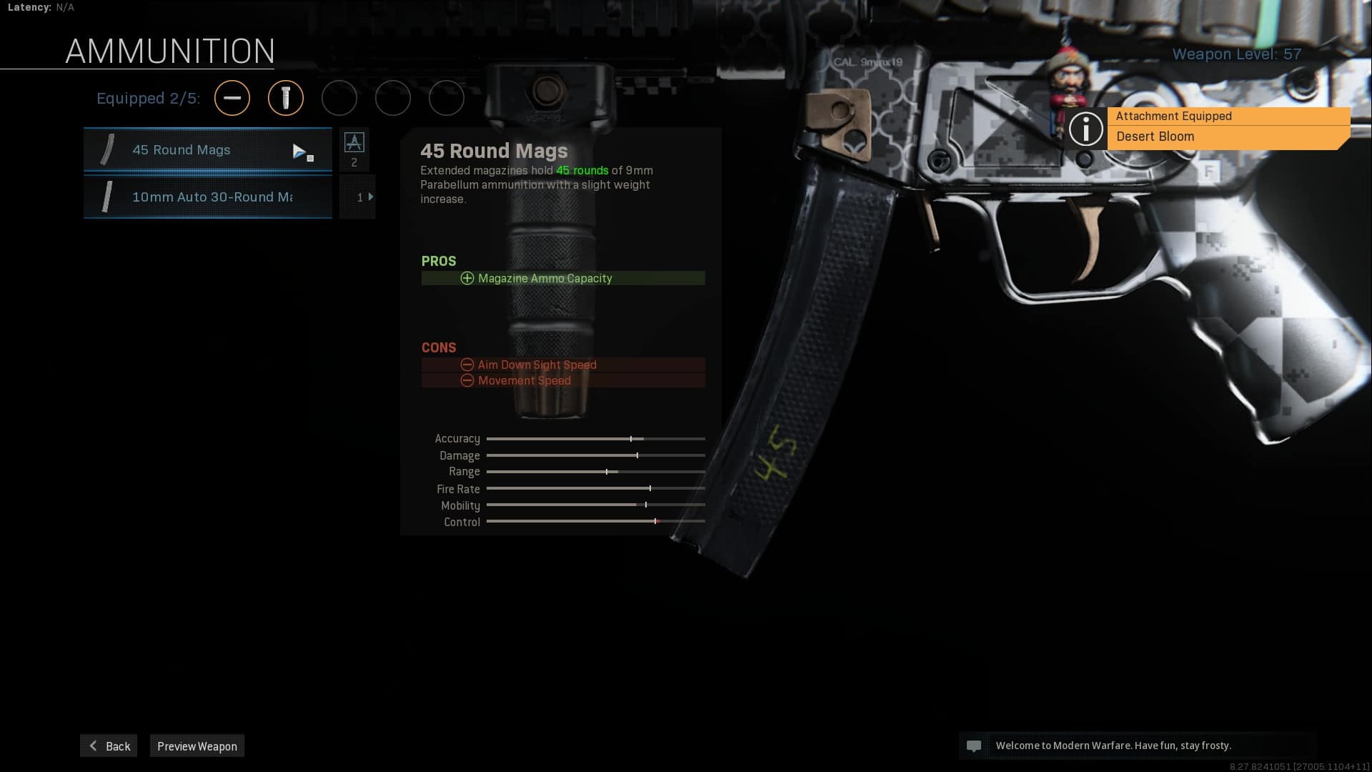 As always, you must choose more ammo for Warzone, than what the default weapon offers. For ARs, we typically go for a standard 60 round mag. For this MP5, the max ammo attachment available is the 45 Round Mags.