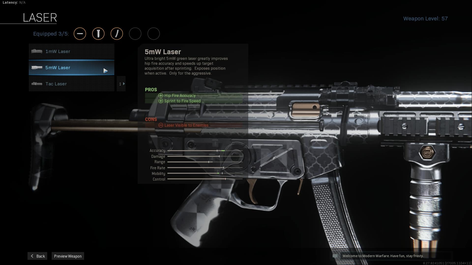 This is also one of the most important attachments for SMGs, and CQC weapon builds. You must choose the 5mW Laser attachment to get even more hip-fire accuracy and that sprint-to-fire speed. Getting those extra shots before your opponent does makes a huge difference in Warzone.