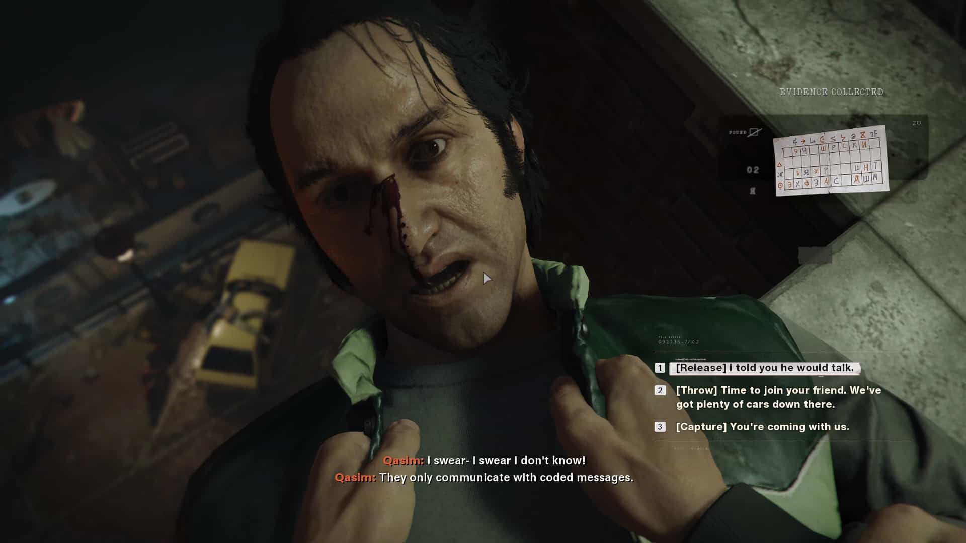- Coded Message: The first piece of evidence is a coded message that you can get by interrogating Qasim Javadi in the first campaign mission, ‘Nowhere Left to Run.’ During the interrogation, a dialogue prompt will pop up that reads, “who’s Arash meeting with?” select this option. Qasim will spill his beans about the coded message upon which the evidence will be added.