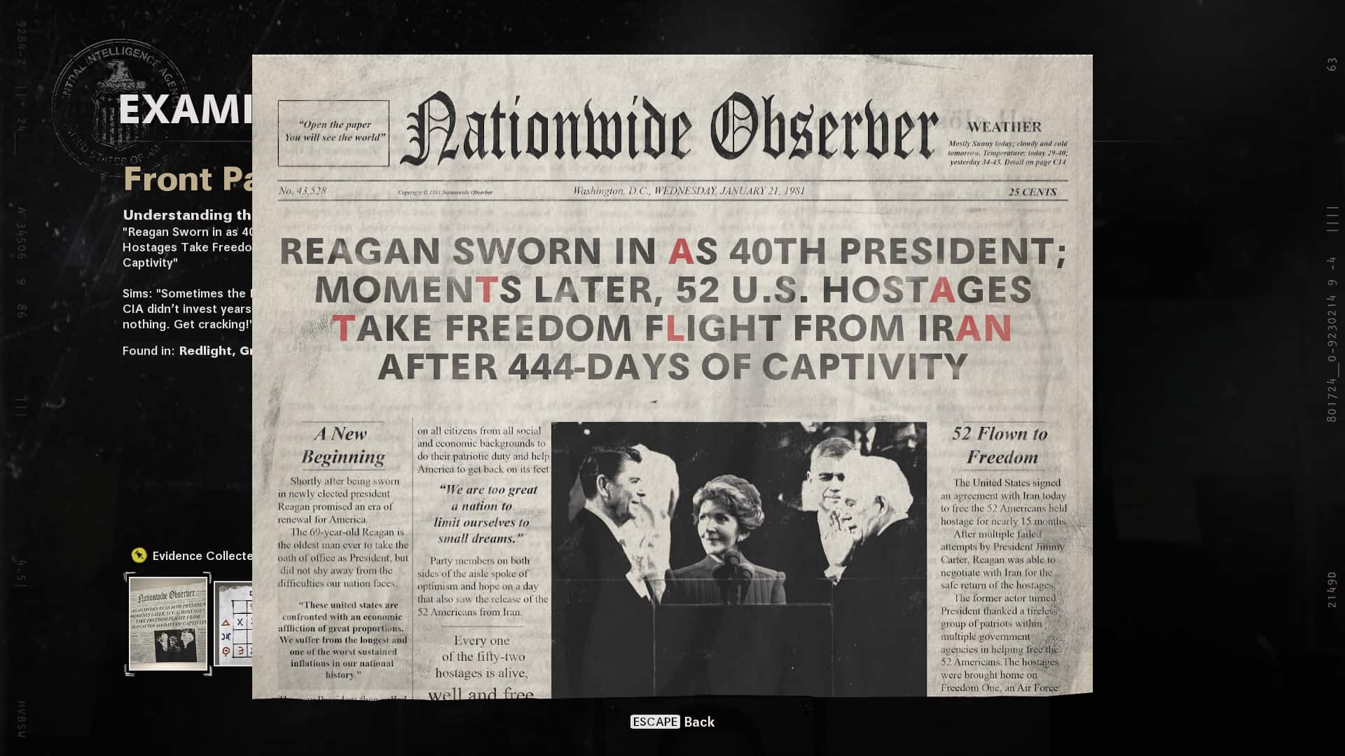 - Observer Newspaper: This evidence is added once you’ve collected 3/6 photo intel during the mission ‘Red Light, Green Light.’ When you are in the vicinity of the intel, you will get a notification at the top of your screen indicating that you are in an objective area. Check the walls around you, and you will notice a highlighted map with a camera icon on it.