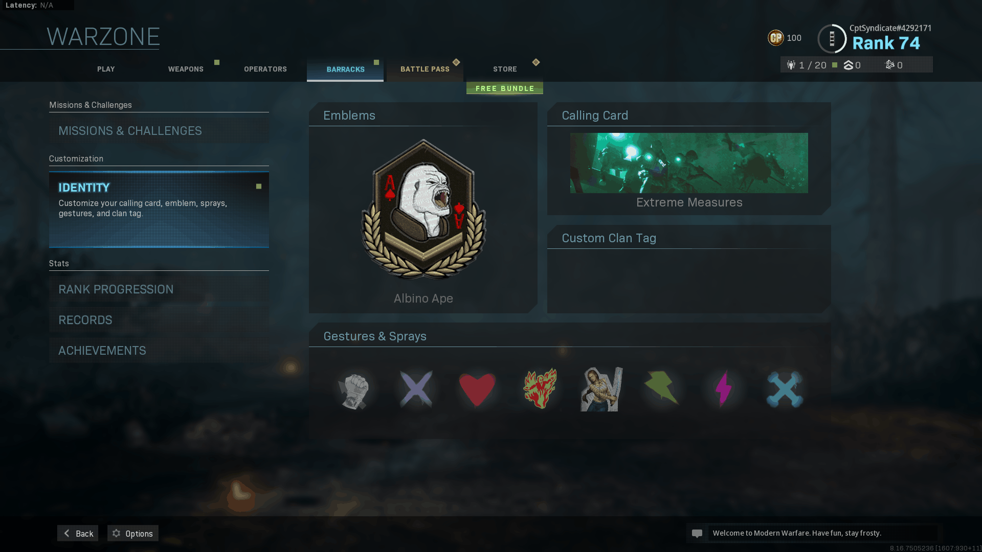 You can easily equip your Sprays and Gestures by accessing the “Identity” section under the “Barracks” tab on your Main Menu.
