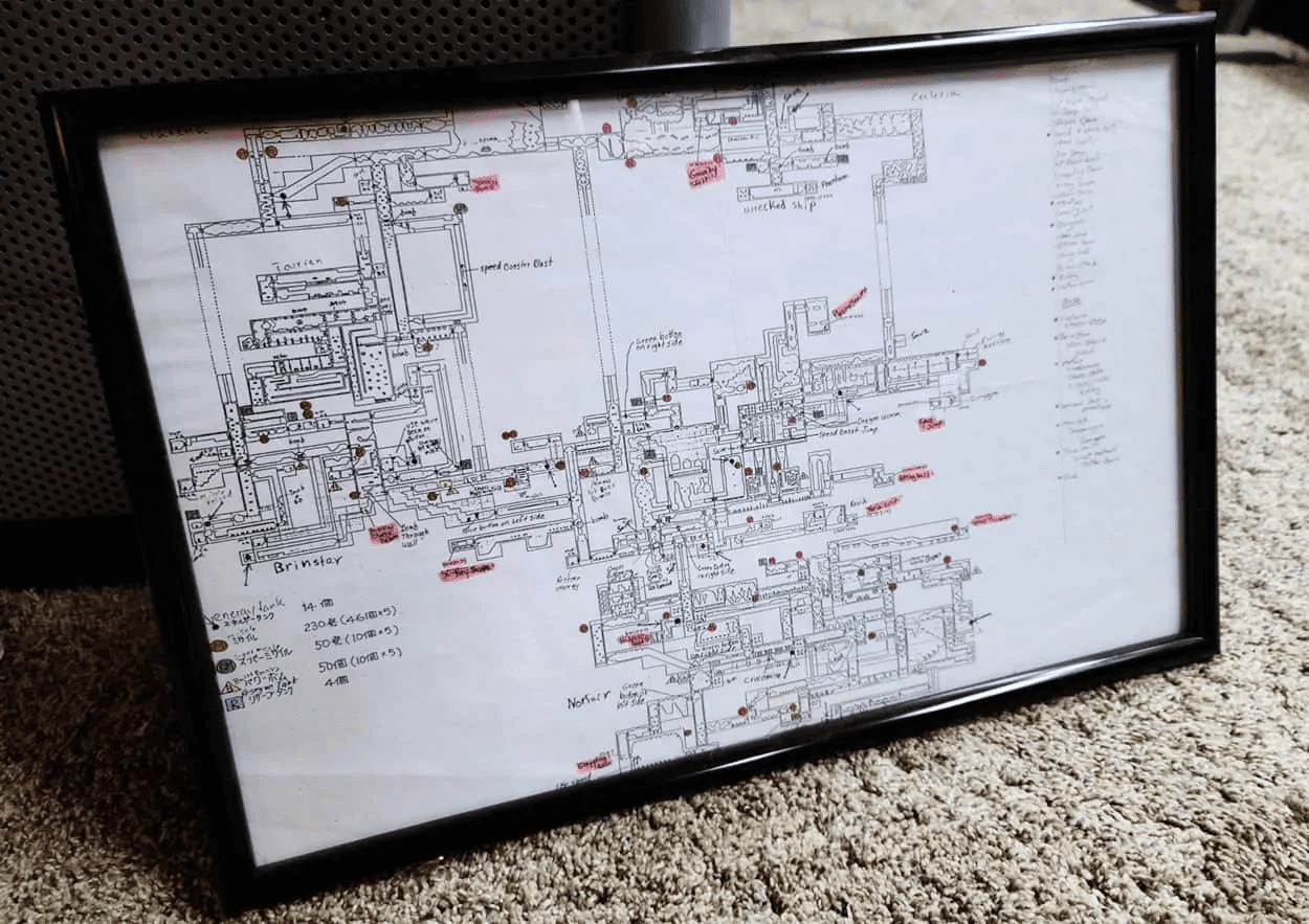 On the Twitter account Art of Nintendo Power, a picture was shared of this super-secret developers’ Super Metroid map! Art of Nintendo Power often shares various Nintendo artwork, photos, and conversation pieces from Nintendo’s past. In this particular tweet, it shows the original hand drawn Super Metroid map used by Nintendo game counselors.