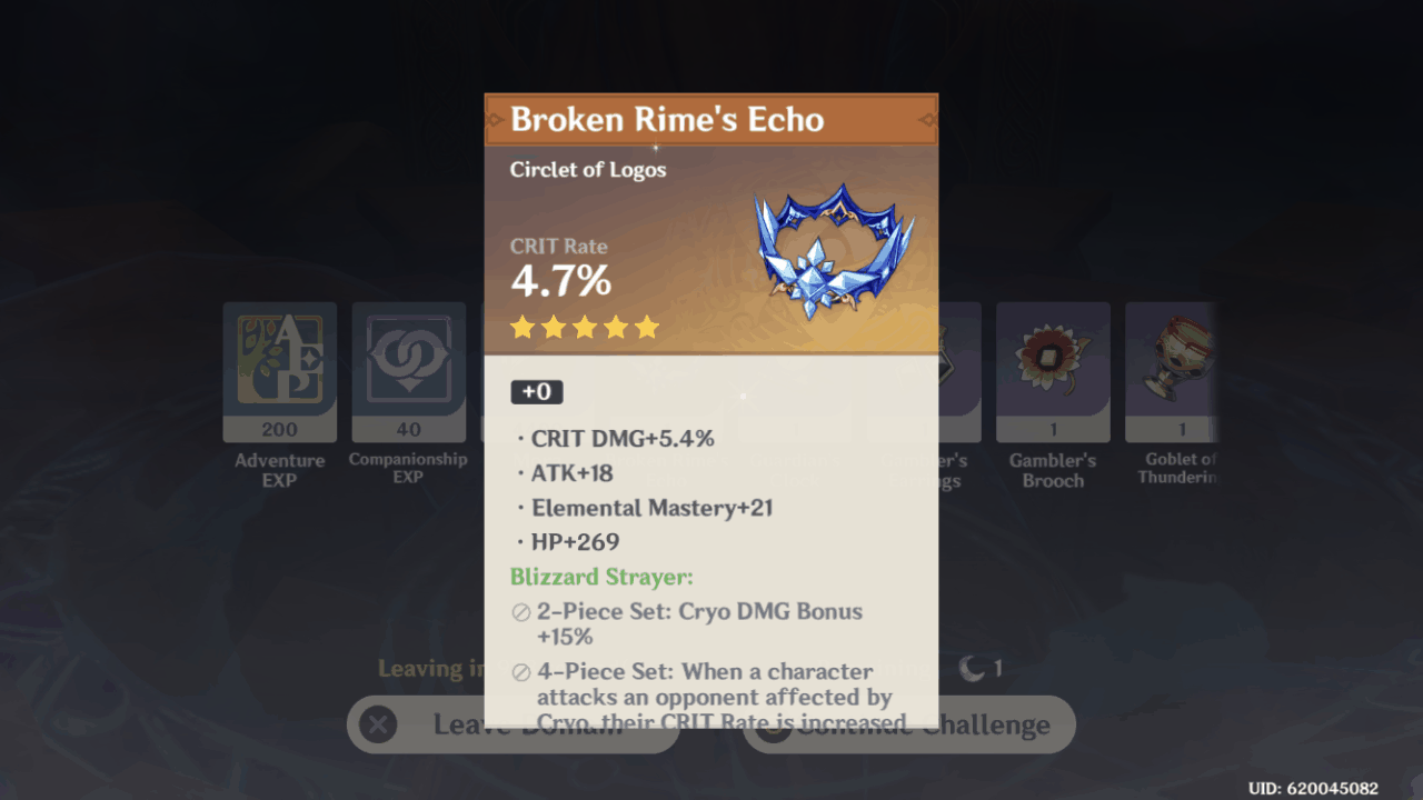 One of the best artifact sets for Ayaka is the Blizzard Strayer artifact set. This set can work for both elemental burst and Cryo DPS builds. You can get this artifact set on the Peak of Vindagnyr domain which can be unlocked after completing the ‘In the Mountains’ quest. 2 pcs. of Blizzard strayer gives you a 15% Cryo damage bonus. 4 pcs. of this set increases your CRIT rate by 20% if your character attacks and applies Cryo on enemies. If the enemy is frozen, you get an additional 20% CRIT rate.