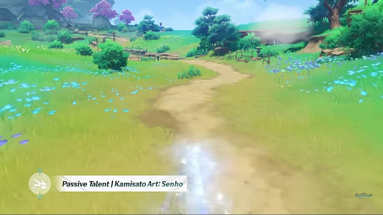 Just like Mona, Ayaka has a unique sprinting passive called Kamisato Art: Senho. Whenever she sprints, Ayaka goes underground and surrounds herself with the Cryo Element, freezing any body of water that she goes through. Her sprint also allows her to move faster in the water. When she gets out of her sprint form, she instantly applies the Cryo element to the nearby enemy and infuses her attacks with the Cryo element.
