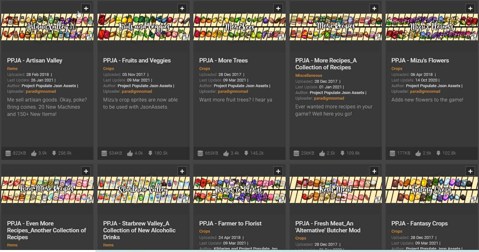 Project Populate Json Assets is the overarching name for roughly 7 MASSIVE content packs created by a collective of modders known as Project Populate Json Assets. It’s hard to even describe what this collection of mods does – rather, what doesn’t it do? PPJA mods add new artisan goods, crops, machines, trees, recipes, flowers, alcoholic drinks, and even a mod where you can grow meat (because who wants to slaughter their adorable pixel cows?).