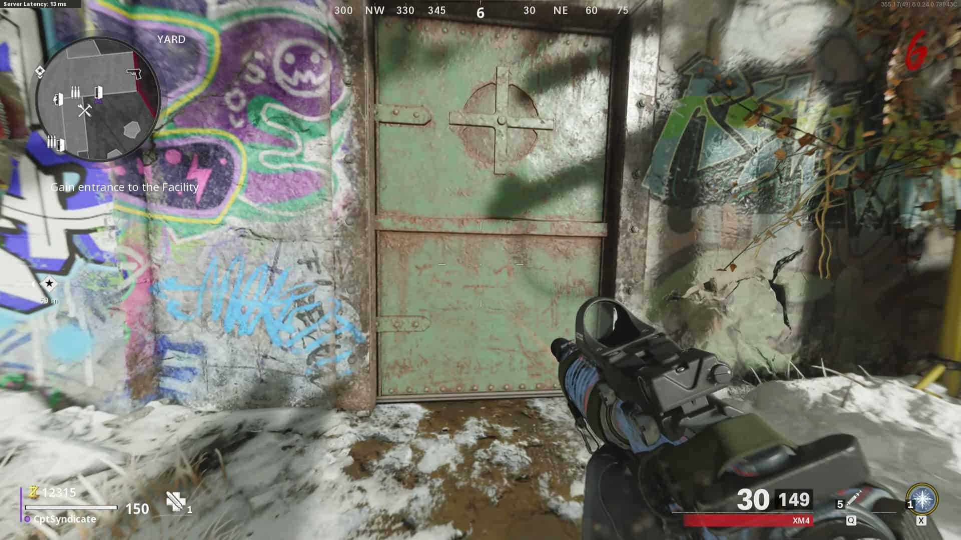 Pass the Jugger-Nog machine, and you will find yet another obstruction that you can clear for 1,250 points to end up in a tunnel. You will finally be at the entrance of the Facility. The facility door will open automatically.