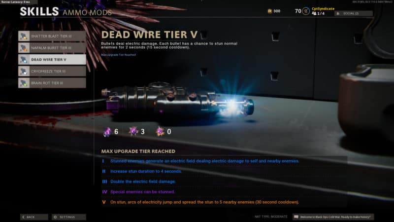 The fifth tier is a game-changer as it helps spread the electricity from the Dead Wire mod to the surrounding zombies, stunning them and ultimately killing them. This is useful when taking out a horde of zombies. You can train several zombies and then time your shots to stun one zombie that, in return, will spread the electricity to the rest of the zombies in the horde, killing them all.