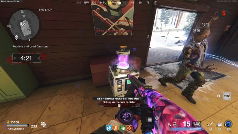 With the Aether Shroud activated, the zombies will ignore you for a limited time period allowing you to move freely. Thanks to the Tier IV upgrade, you can move faster, as carrying the canister slows you down. The Aether Shroud Field Upgrade also comes in handy when you are inserting the canister into the rocket. You should insert it while you’re shrouded, as no zombies can attack you while doing so.