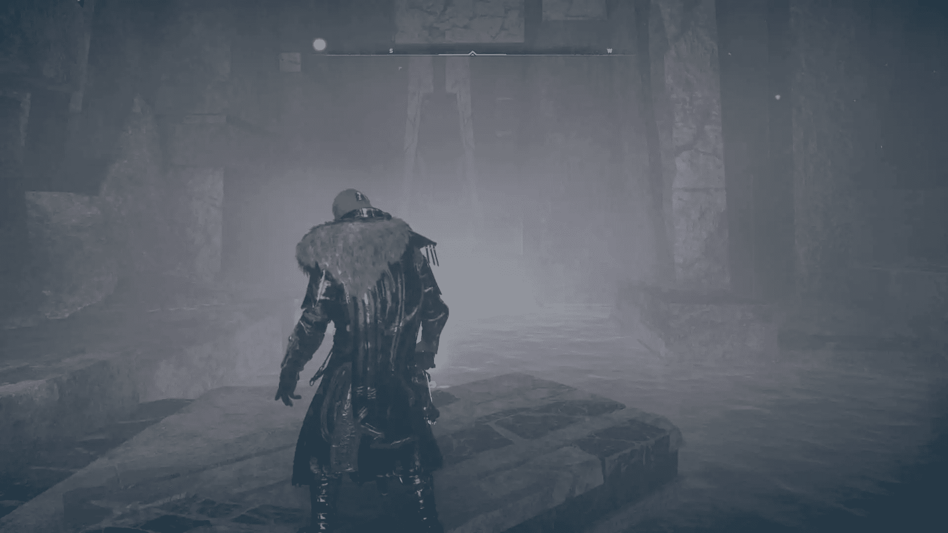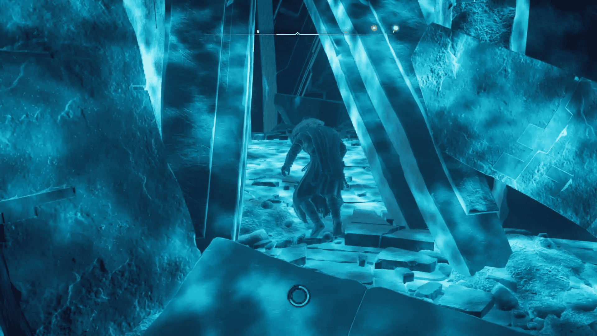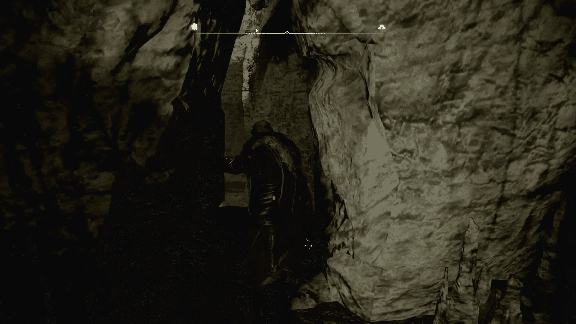 Continue following the path ahead until you reach a narrow gap in the wall. Squeeze through the gap to reach a “ritual” room.