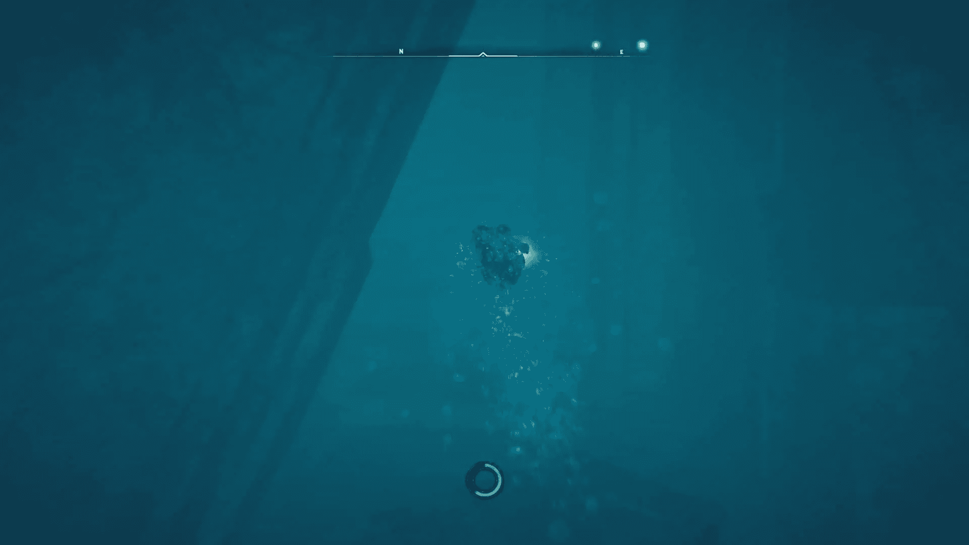 Dive underwater and swim in a linear path until you come across a wooden board blocking your path.