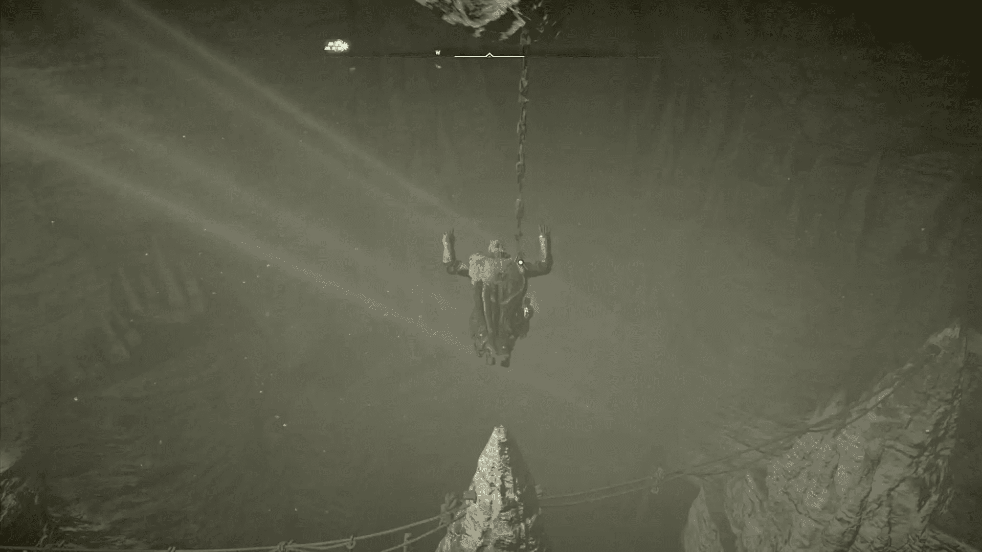 Jump down into the opening that you see in the image above and continue to reach an open room with another hanging key called the ‘Key of Balance’ and some stalagmites that you can climb and jump across.