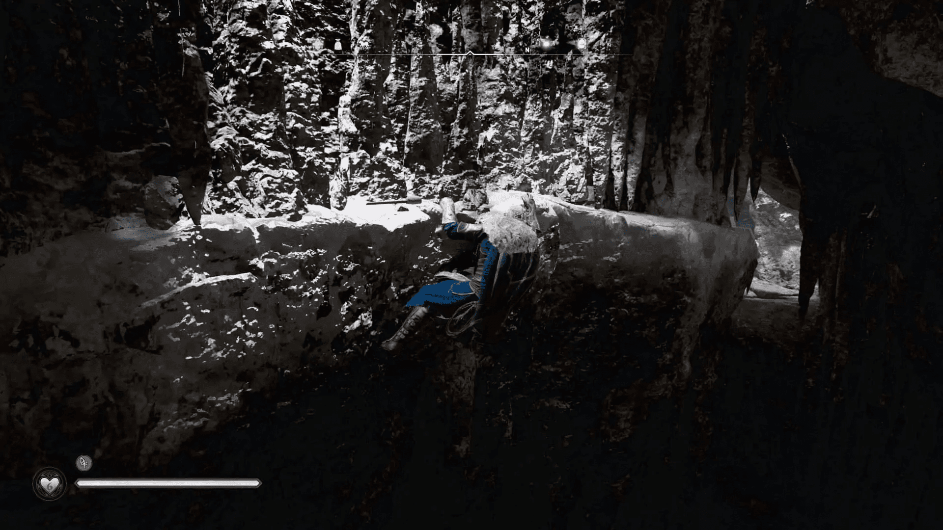 Jump down, and climb the tree branches to move forward into the cave. There will be a path in front of you that you can jump on from the tree branch.