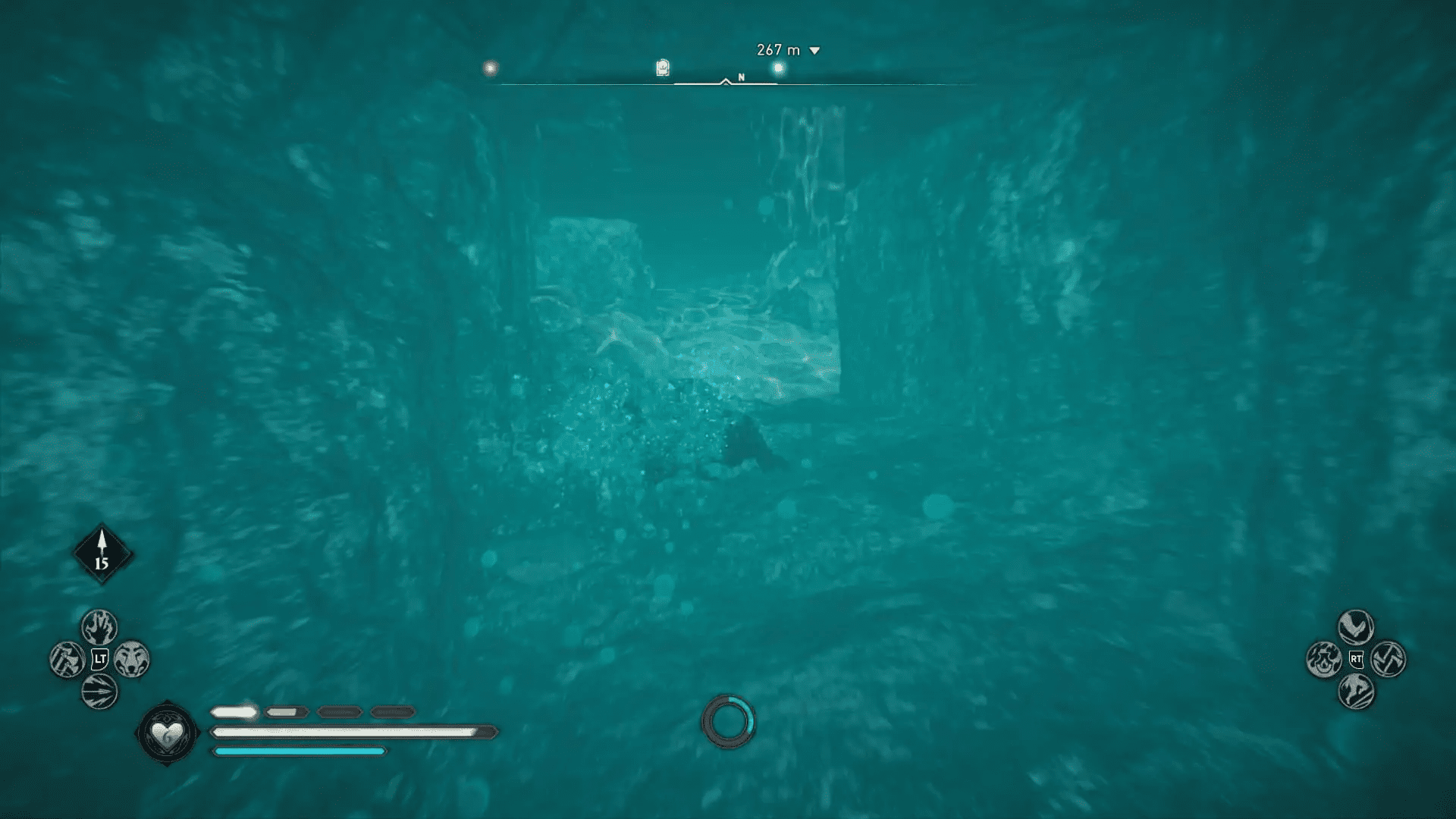 Dive deep underwater, and you will find a small gap taking you to the other side of the entrance.