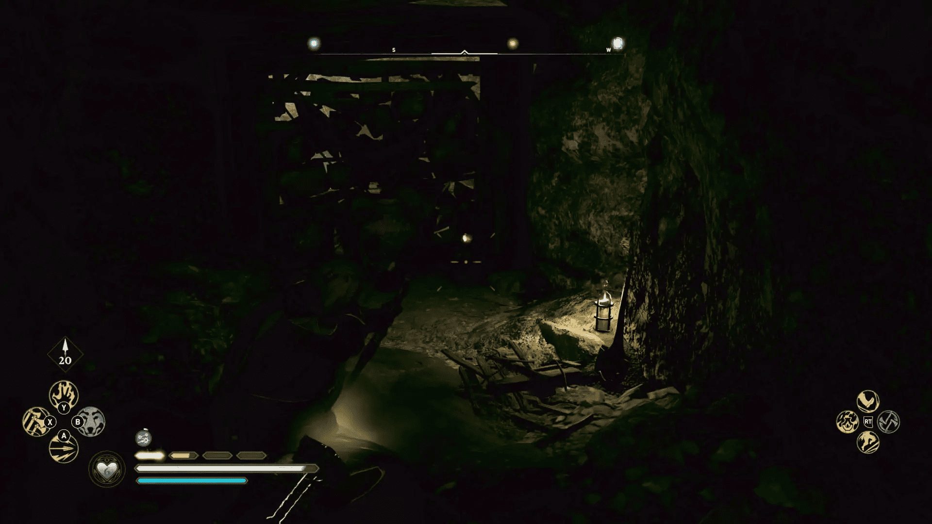 Keep moving forward, and you will find a ledge to your right to continue ahead. Go through the ledge and go through a narrow gap in the wall ahead of you.