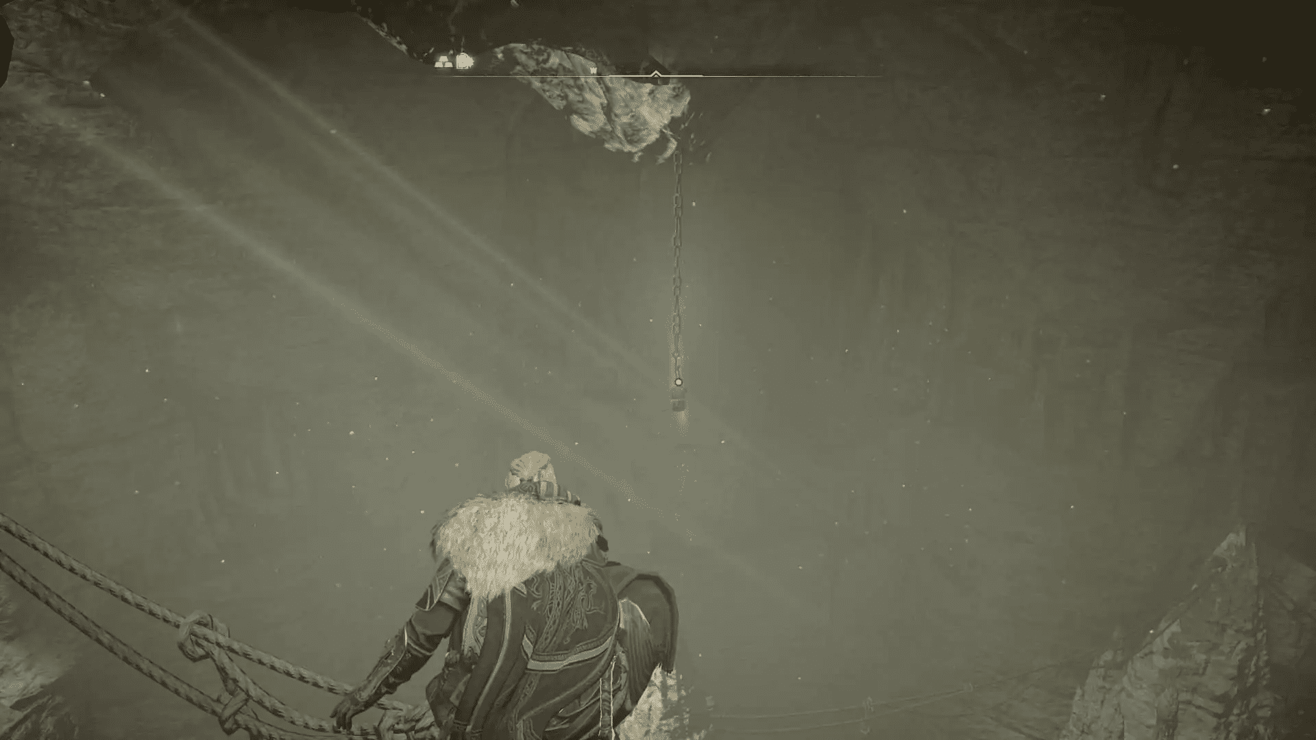 Keep shooting until Eivor says that “The wine has filled the shaft, bearing my prize with it. I should be able to reach it now.”
