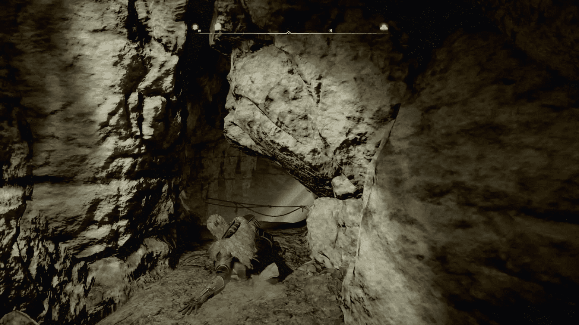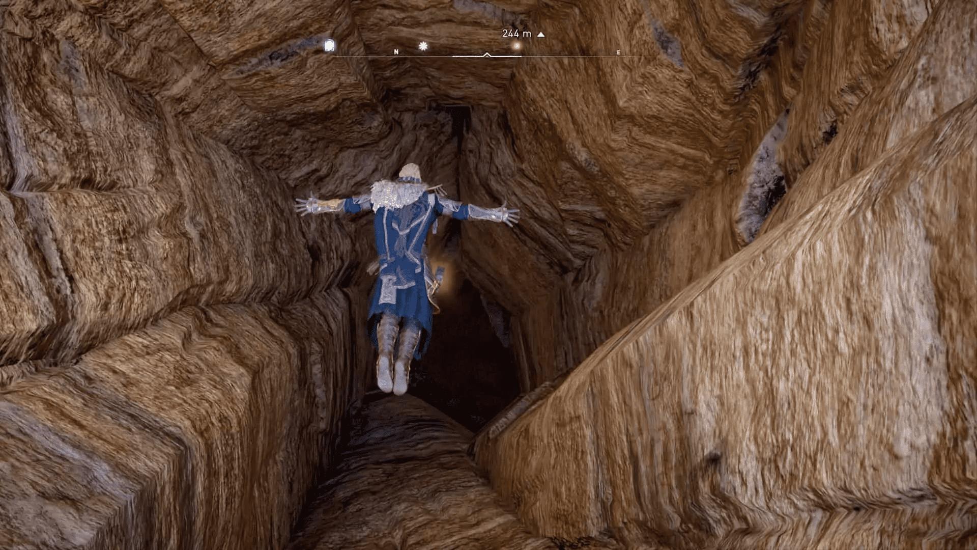 Enter the cave and continue moving forward until you come across a small hole you can slide through.